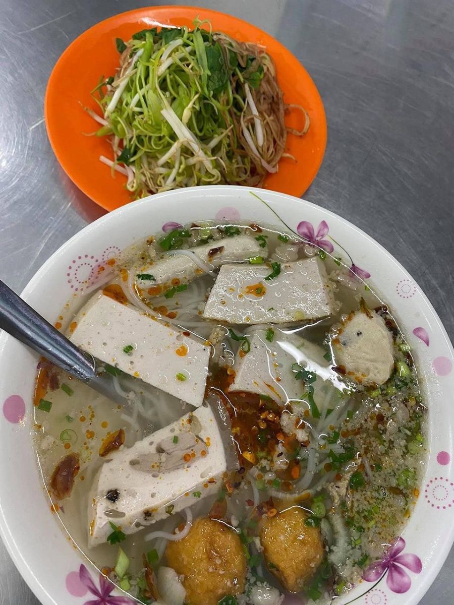 Southern-style vermicelli features a crab-based broth with tofu, pork blood, and sour meat. Slightly sweet and deeply aromatic.