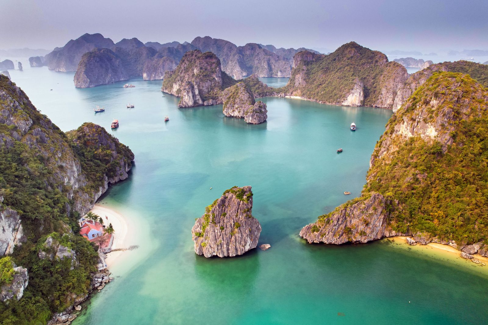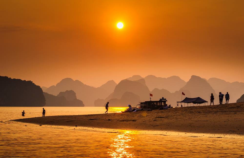 Several spots in the bay offer beautiful small beaches. Ti Top Island has a curved white-sand beach and a hilltop viewpoint that offers a panoramic view of the surrounding karsts. The climb is steep but the reward is one of the most photographed views in all of Halong Bay, Vietnam.