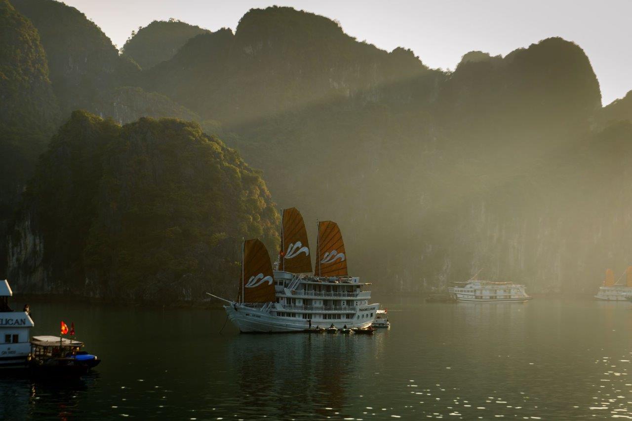 The overnight cruise Halong Bay experience is the gold standard. Spending a night on the water lets you see the bay at different hours sunset, late night under the stars, and early morning mist none of which are possible on a day trip. Most cruise ships are elegantly fitted wooden junks with private cabins, onboard dining, and sun decks.