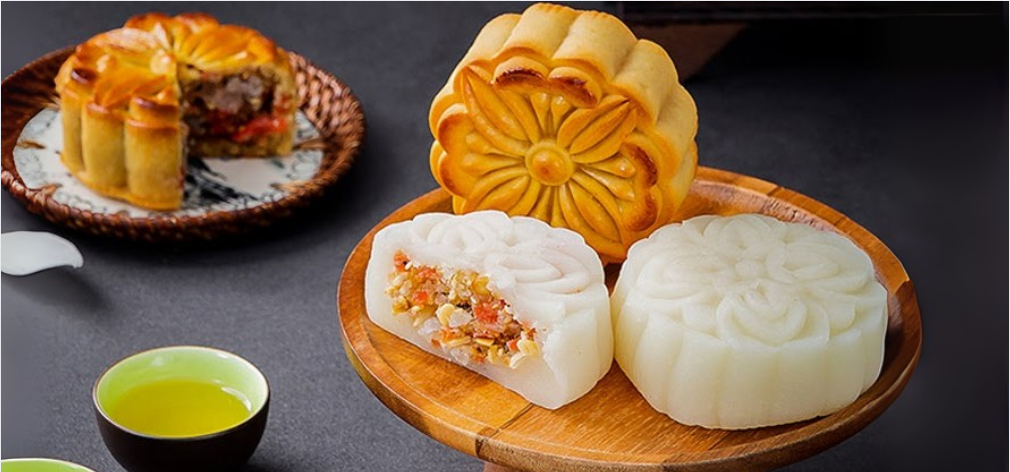 - Bánh nướng – Baked mooncakes with lotus seeds, mung beans, salted egg yolks.
