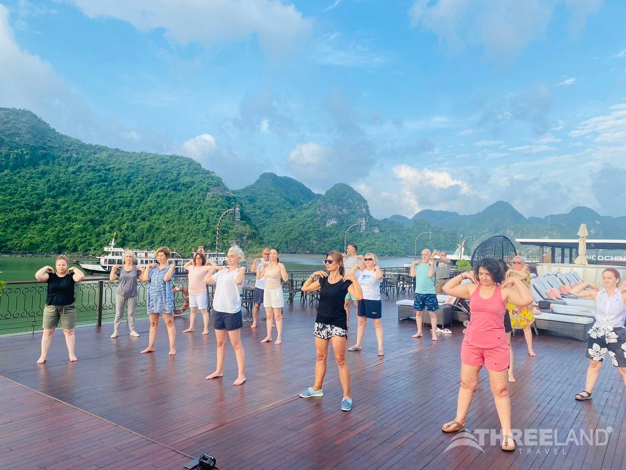 Morning wake up with a taichi-quan or yoga exercises guided by the crew before having breakfast whilst your boat goes on between Halong islets. Return to the Wharf to be back to Hanoi by shuttle bus at midday. Arrive in the city around 3-4pm. Overnight in Hanoi.